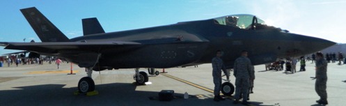 The latest addition to the Air Force arsenal, the secretive, stealthy F-35 attack fighter -- cordoned off, and surrounded by armed guards -- was on careful display.