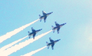 A few civilian aircraft were exhibited or performed, but the stars of the show, predictably, were the Air Force Thunderbirds aerial demonstration team, flying their F-16 fighters.