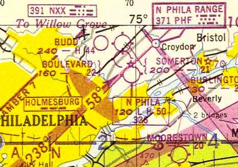 Pilots would tune their radio to the frequency of the desired radio range, and confirm that they had the right one tuned in by listening for an intermittent identifier signal — typically 3 letters (broadcast in Morse Code), often resembling an abbreviation of the name of the nearest town or airport — "DEN" (for Denver), "LUK" (for Cincinnati's Lunken Airport), and so on. Once correctly tuned in, the pilot listened to the continuous signal from the station — which would be the Morse Code signal for "A" or "N" — depending upon which quadrant he was flying in — or a constant hum resulting from the overlapping "A" and "N" signals along the "beam" between two quadrants. Typically, the pilot's goal was to be "on the beam," following the centerline of an airway. But the ranges also helped off-airway navigation as well, by providing pilots with approximate location information, simply and cheaply. |