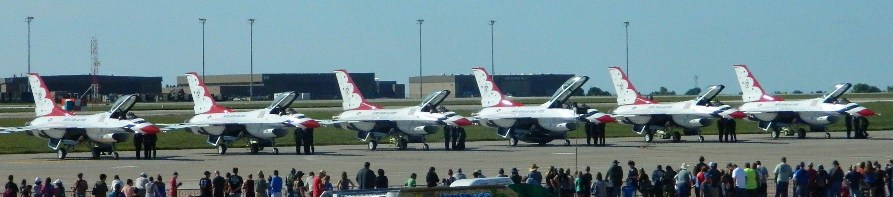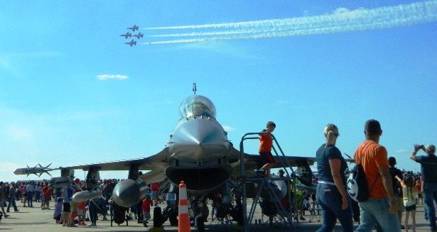 A few civilian aircraft were exhibited or performed, but the stars of the show, predictably, were the Air Force Thunderbirds aerial demonstration team, flying their F-16 fighters.