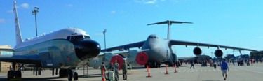 Towering over the RC-135 spyplane, the C-5 Galaxy -- America's biggest military transport.
